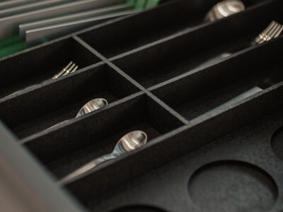 Uložte své příbory do zásuvky, která se skládá ze 78 procent z konopí a kenafu, ve stejném poměru. Zbývajících 22 procent tvoří termosetové, síťovací pojivo, které je na vodní bázi a neobsahuje formaldehyd ani fenolovou pryskyřici. OrganiQ je název ekologicky šetrného kompozitního materiálu, který byl vyvinut v dřevařské továrně Rockenhausen v Německu společně s Technickou univerzitou v Kaiserslauternu. Rouno se vyrábí jen několik kilometrů od Rockenhausenu. Tímto způsobem lze také zaručit úsporu emisí CO2 během přepravy.