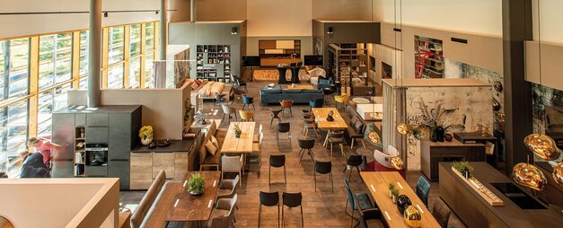V prostoru skladu vznikla úplně nová dřevostavba, kde na ploše 450 m2 najdete velkorysou prezentaci toho nejlepšího z našeho sortimentu. Po vstupu do prodejny se ocitnete v první zóně „svět bydlení“.