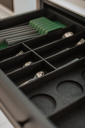 Uložte své příbory do zásuvky, která se skládá ze 78 procent z konopí a kenafu, ve stejném poměru. Zbývajících 22 procent tvoří termosetové, síťovací pojivo, které je na vodní bázi a neobsahuje formal